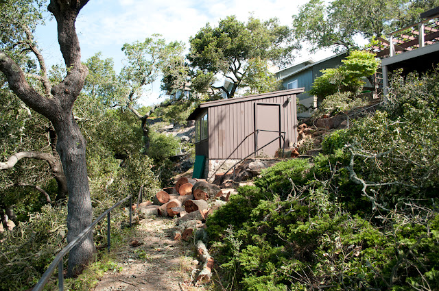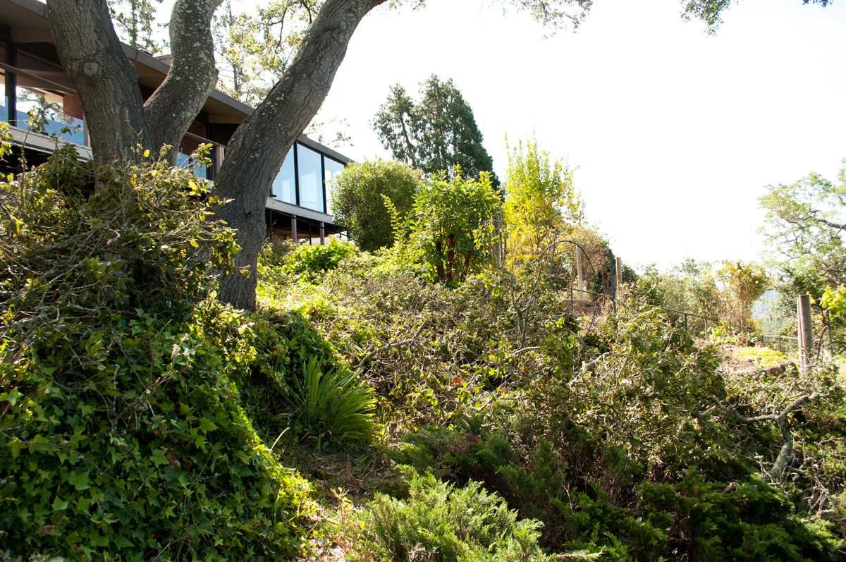 We plan to keep everything natural but put in a meandering stone/gravel path throughout the slope to 3 different sitting areas. Luckily, we only had to chop 3 oaks down. Punching holes in the oaks and creating canopies really opened up a lot of our views. At this point, though it’s a little hard to envision the landscaping with the mess! A landscape crew will be coming next week and cleaning up.