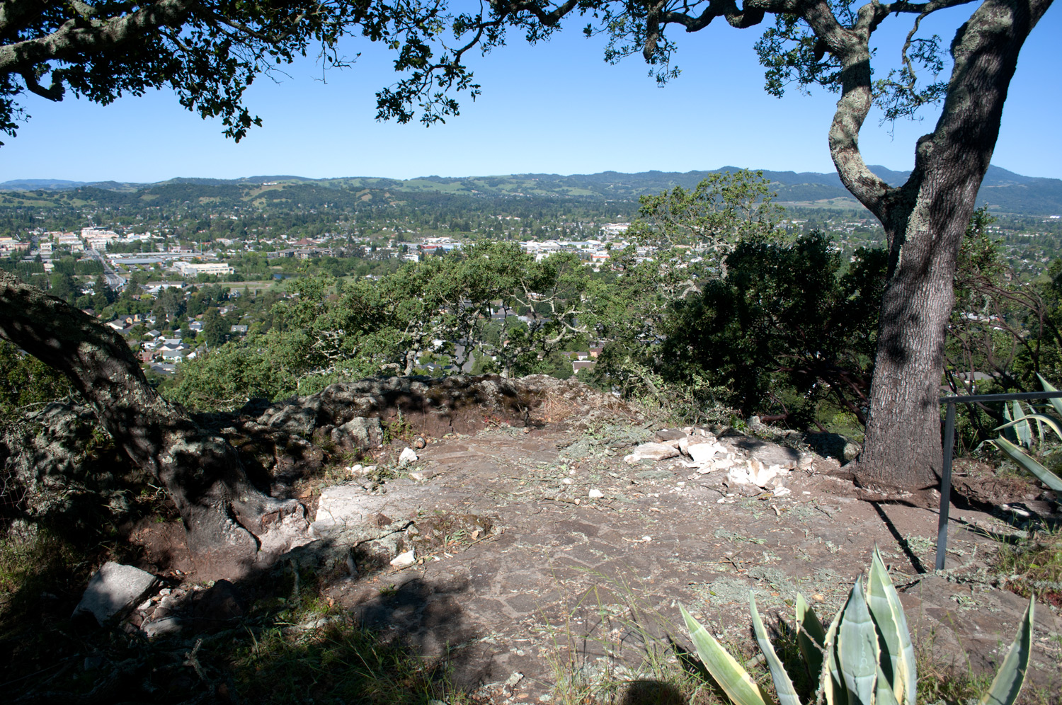 The back is a fairly steep slope that ends at a 40 ft. cliff – with the incredible views.