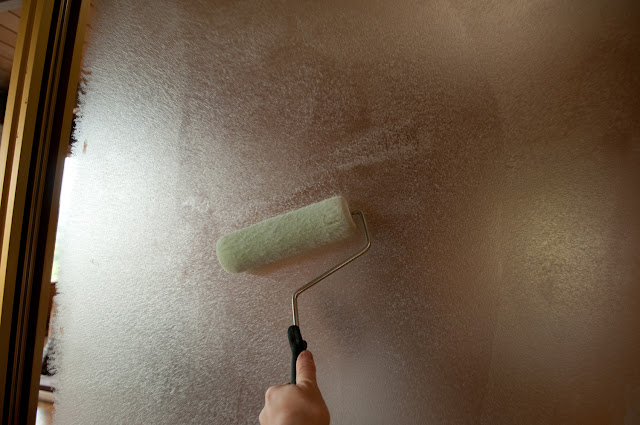 Then apply wallpaper. I went over by hand to get all the air bubbles out (you cannot apply water to grasscloth so no sponging)