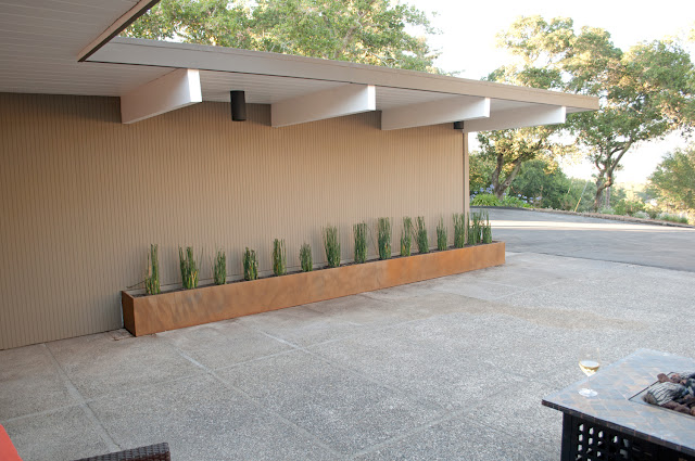 Here is a closeup of the corten steel planter box in the courtyard.
