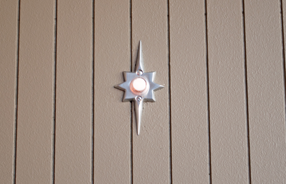 The door knob is from Rejuvenation. It matches the doorbell, also from them. I tried to incorporate these mid century modern touches throughout the house. Their mid century modern pieces are GREAT. Definitely worth the money, and the quality is excellent.